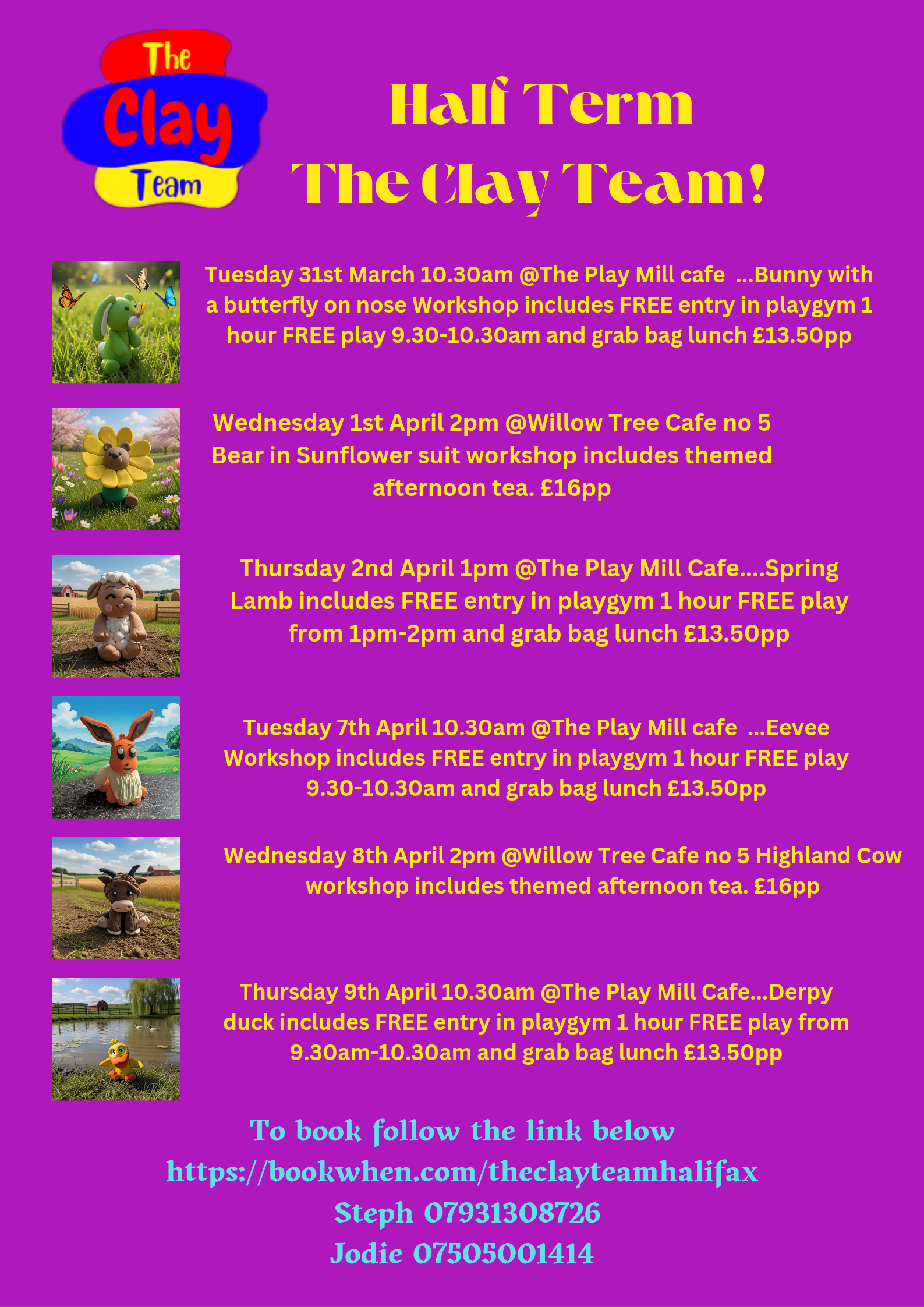 The Clay Team are based in Halifax West Yorkshire, we have been clay modelling since 2014 and love every aspect of what we do. We create 3D models using air drying clay and offer workshops, virtual packs, birthday parties, after school clubs, community groups for children and adults over the age of 4 with lots of hidden learning. We also offer cake toppers, commissioned pictures, 3D framed hand/foot prints, and pet paw prints.